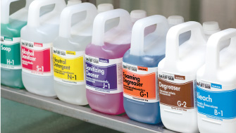 Simple labeling is the key to correct usage.สีสันและภาพประกอบที่แสดงบนฉลาก ช่วยแยกความแตกต่างของผลิตภัณฑ์ แต่ละชนิด สีบนฉลากจะตรงกับคู่มือการใช้งาน ตัวหนังสือขนาดใหญ่และภาพ ประกอบที่เข้าใจง่าย มีคู่มือการใช้งานที่ถูกสร้างขึ้นในหลายๆภาษา รูปแบบ ฉลากที่ถูกต้องและภาพประกอบอย่างง่าย ทำให้การใช้งานไม่ยุ่งยาก ช่วยเพิ่ม แรงจูงใจในการทำงาน และให้ผู้ปฏิบัติงานเข้าใจวิธีการได้ชัดเจน สีฉลากบนขวดบีบและขวดสเปรย์จะตรงกันกับฉลากบนแกลลอนน้ำยา เพื่อการใช้งานที่ถูกต้องและปลอดภัย